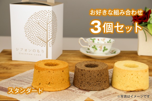 お好きなシフォンケーキ3個をお選びください。 指定がない場合は下記3点をお届けいたします。 バニラ アールグレイ ショコラ ※冷凍してお送りいたします。
